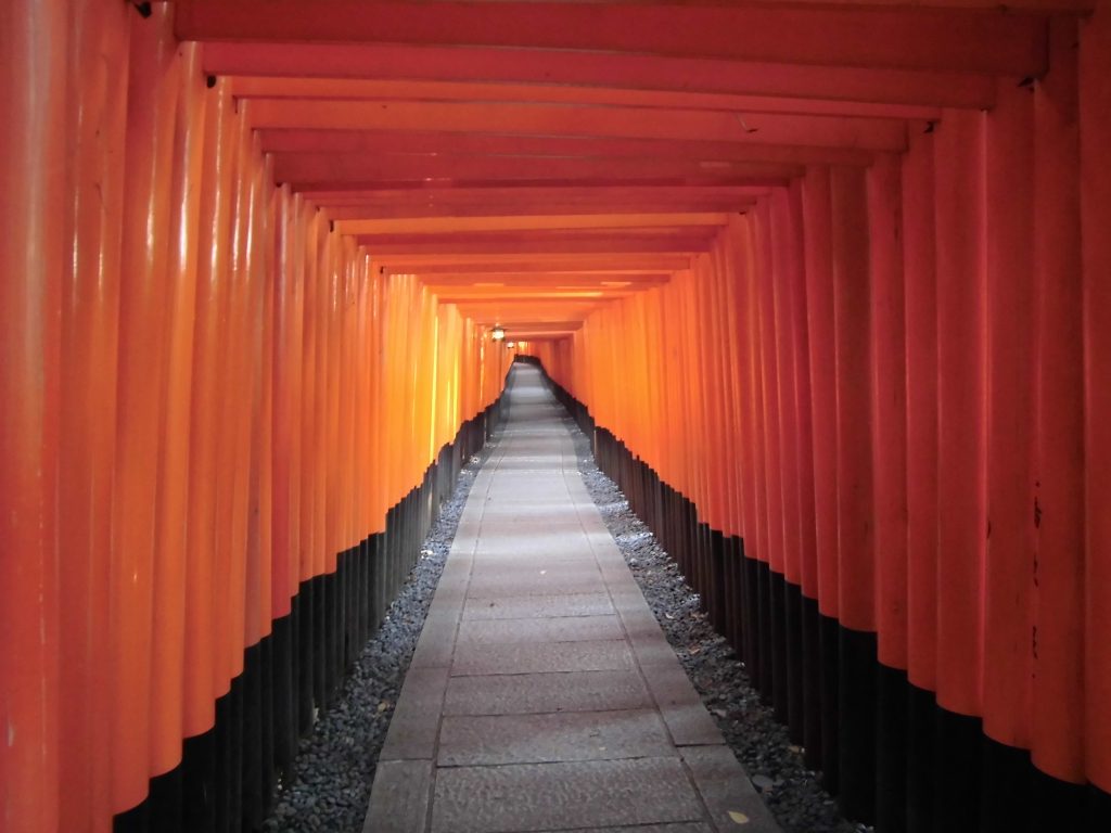 Kyōto was the second capital of Japan after Nara, from 794 to 1868: if you’re seeking the peace of zen gardens or the triumph of the refined imperial court of the Heian period, well, you’re in the right place. 365 days wouldn’t be enough to visit all the temples and gardens in the city, most of which are located in the hills surrounding beautiful Kyōto. The river crosses the city from the north to the south: it’s almost as large as the Arno and the Japanese students, like the Florentines, would hang out near the river on fresh summer evenings. I left my heart in one of Kyōto’s most famous temples: I lived some of the happiest moments of my life in its kilometer-long corridor of vermillion torii. I’m talking of course about Fushimi Inari. One of the scenes from the film Memoirs of a Geisha (but don’t mention this film to the Japanese, they hate it) is set in Senbon Torii, the gallery of a thousand orange poles fixed in the ground, that welcomes pilgrims and invites them to wind along the path through the forest’s green belly, climbing until they reach the mountain’s peak. You’ll be accompanied by foxes, who will keep a close watch over you. They are the sacred messengers of the rice goddess Inari, bringer of abundance but also death.