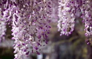 According to legend, wisteria was first seen by a westerner in 1816, in China. Captain Welbank was, in fact, having dinner at a rich merchant from Guanzhou (Canton). The banquet took place under a pergola full of wisteria, called by the Chinese Zi Teng, “blue vine”.