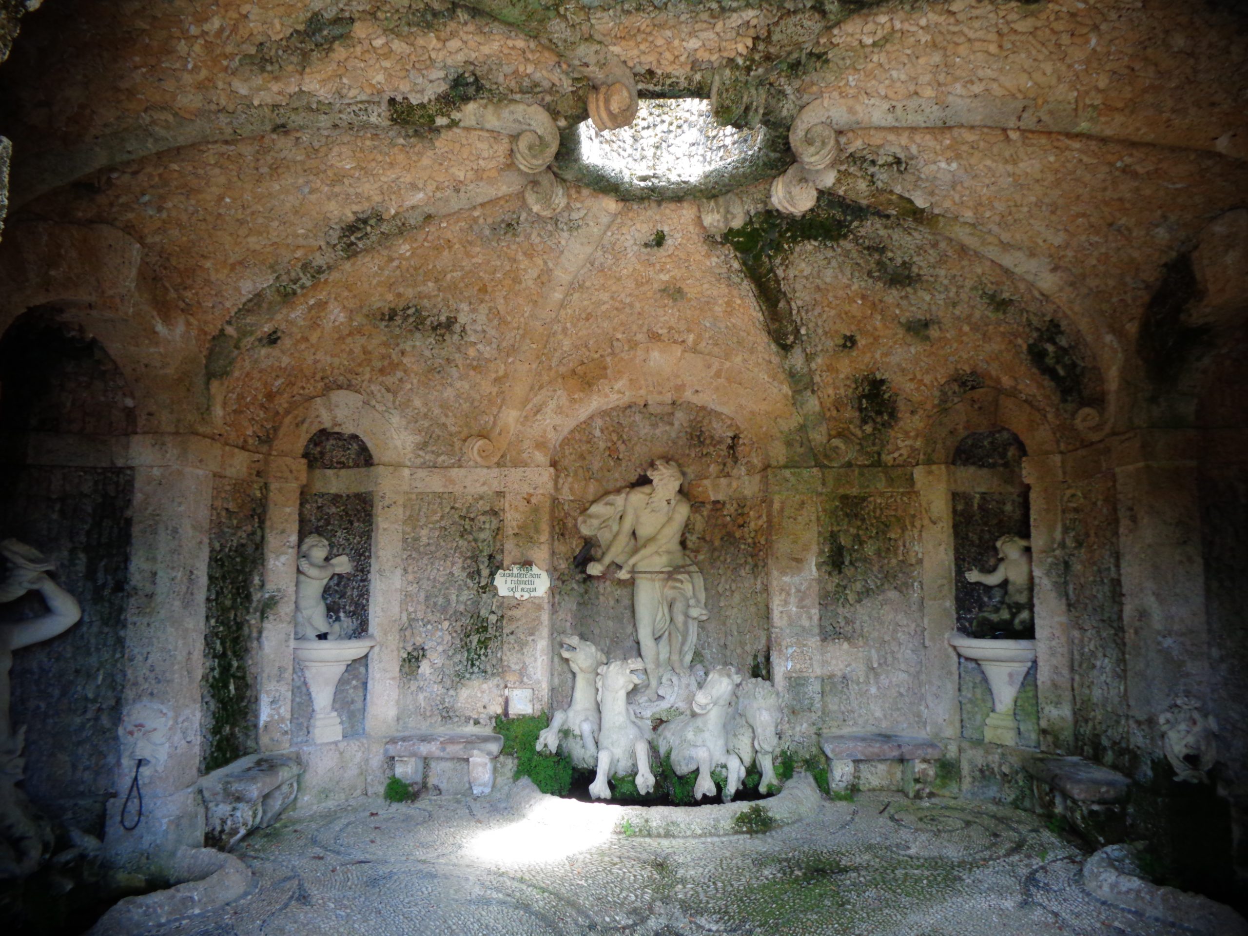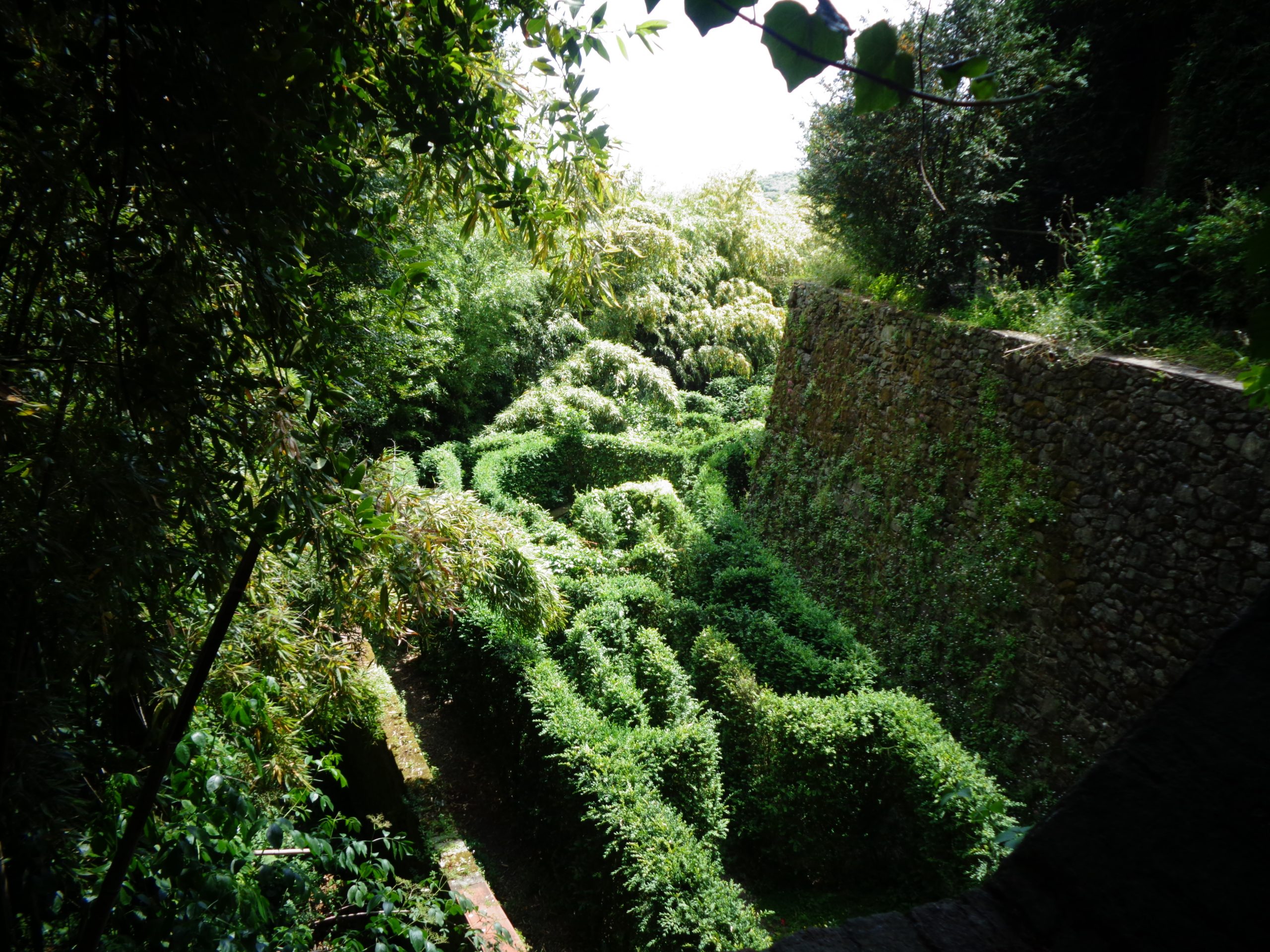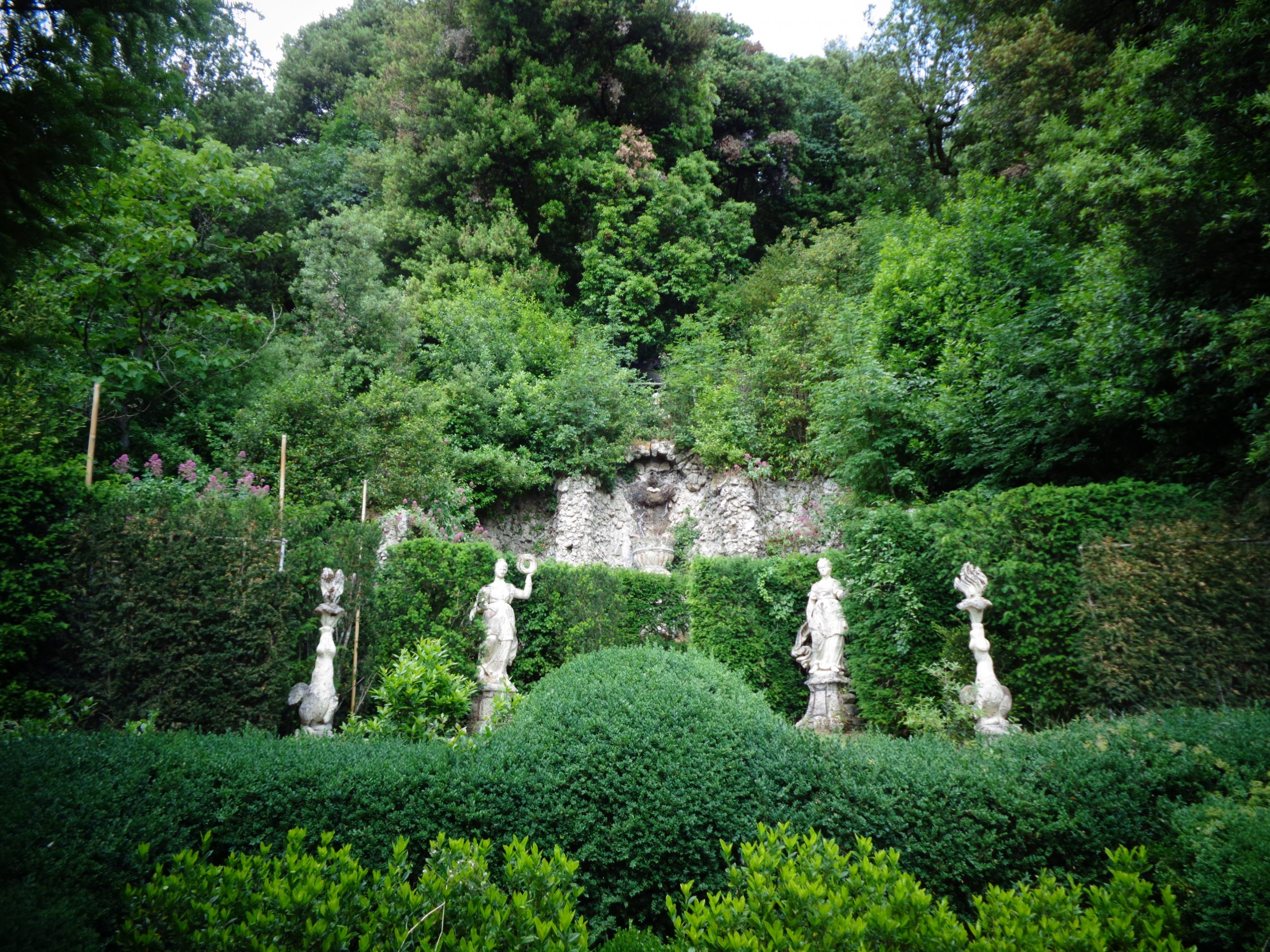 Se continua con la refrescante Gruta de Neptuno, entre floraciones y céspedes suaves, hacia el espeso bosque de encinas, hasta alcanzar la parte más misteriosa del jardín: el Puente sobre el Río, de donde es posible vislumbrar el último laberinto de boj todavia existente en el antiguo estado de Lucca, antes de perderse en el bosque de bambú.
